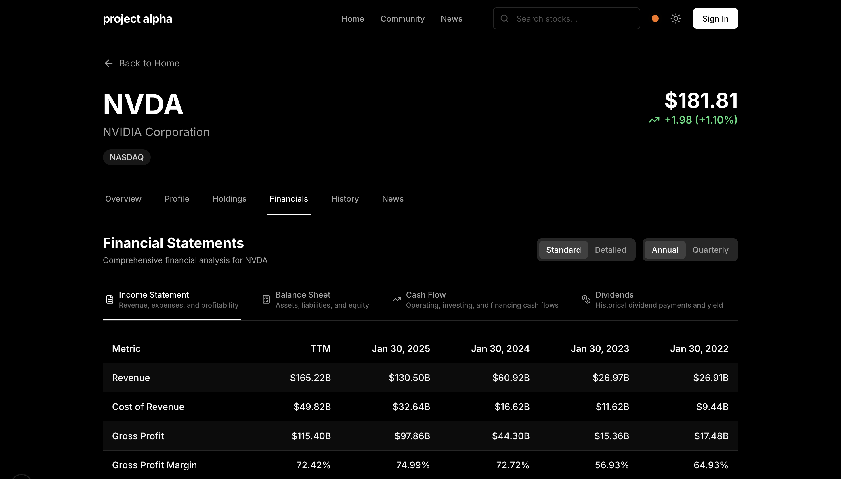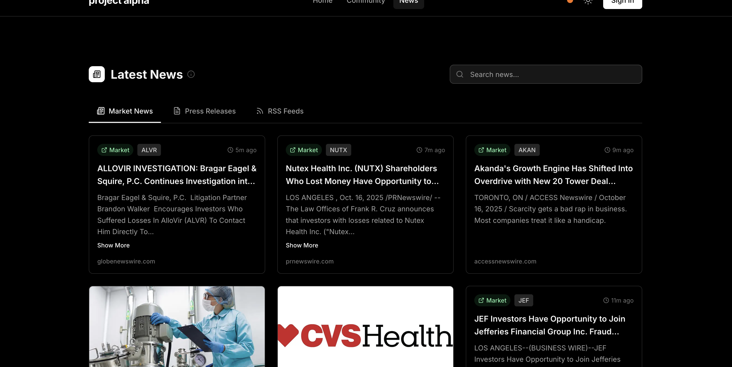 Project Alpha is a full-stack financial data and community platform designed to provide users with real-time market insights, stock analysis tools, and a collaborative space for discussion.